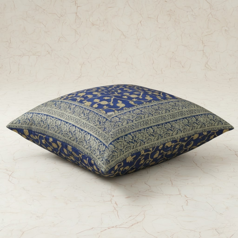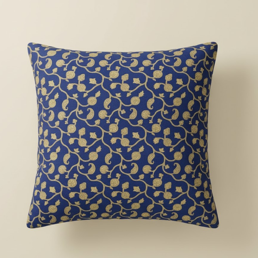 Add a touch of royal elegance to your home with this fabric-crafted blue cushion cover, beautifully inspired by the timeless artistry of Kashmiri ‘Kani’ and Mughal/Persian designs. Made from premium poly cotton, this cover offers a luxurious texture that combines softness, durability, and heritage charm.