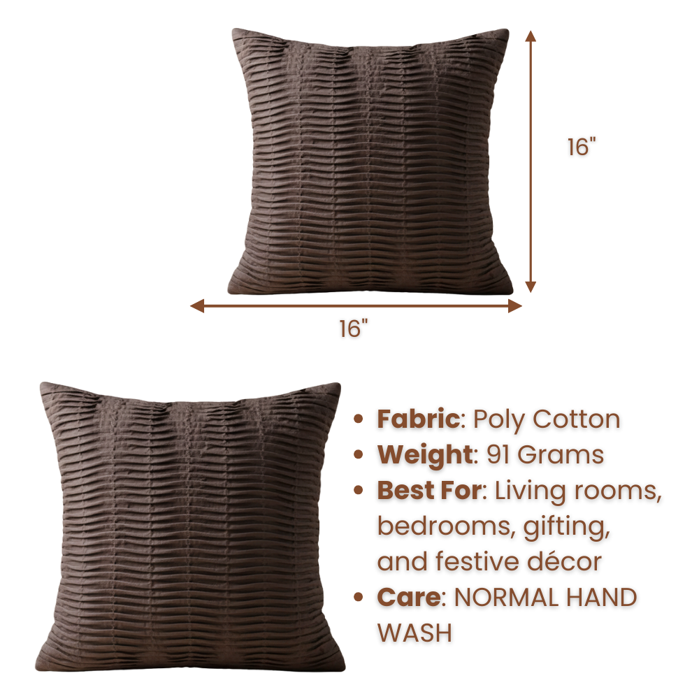 Bring warmth and understated luxury to your home décor with this beautifully fabric-crafted brown cushion cover. Designed with a refined pleated ribbed texture, the rich brown tone adds depth, softness, and a cozy elegance that blends effortlessly with both modern and classic interiors.