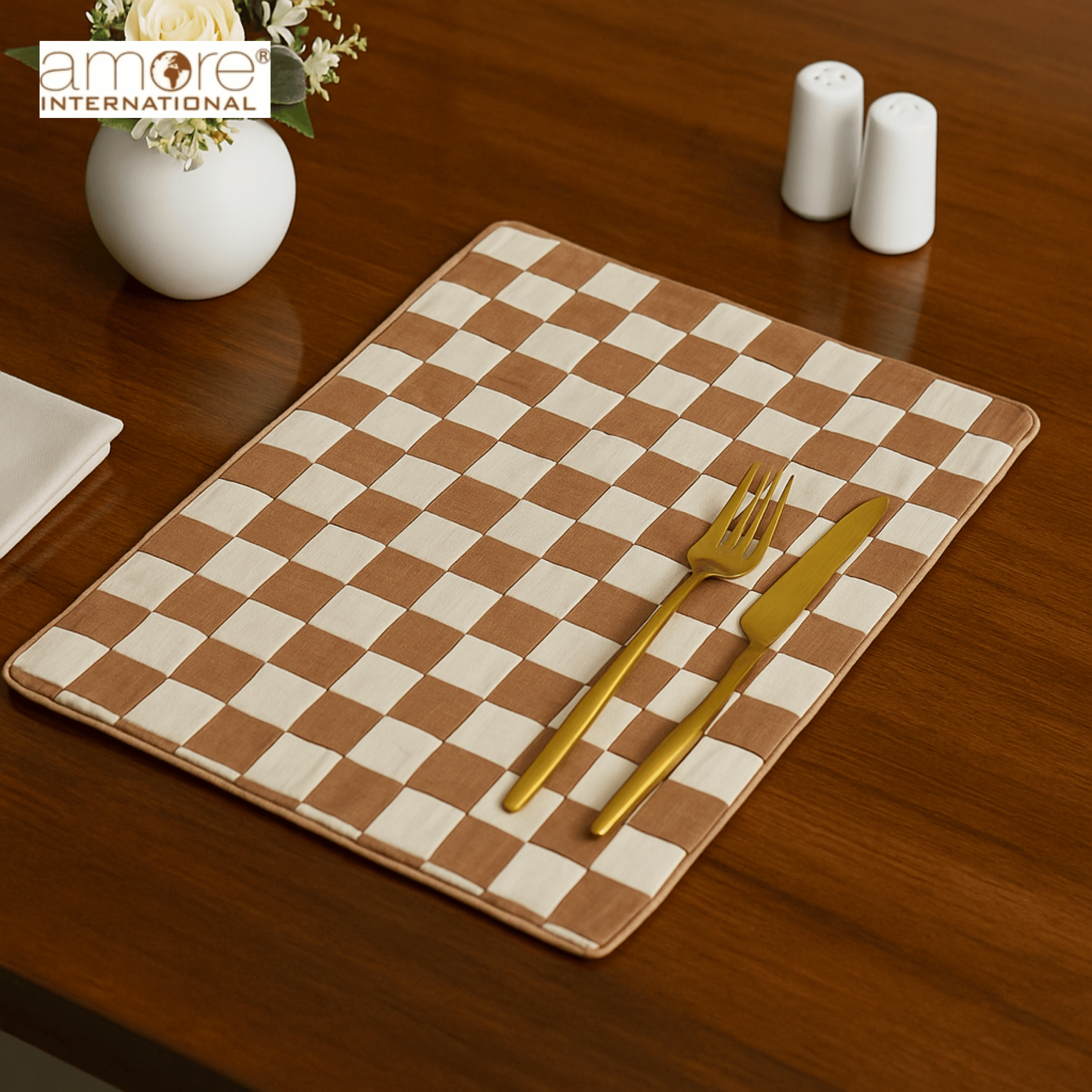 Bring style and functionality to your dining table with this checkered brown fabric placemat, designed for everyday elegance. Made from durable poly-cotton material, it offers long-lasting quality with a soft and smooth finish. The classic checkered pattern adds a timeless touch to your décor, making meals feel more special. With a weight of 125 grams, it provides sturdiness while staying lightweight and practical. Perfect for both casual and formal dining, this placemat is machine washable, ensuring easy cleaning and daily convenience.
