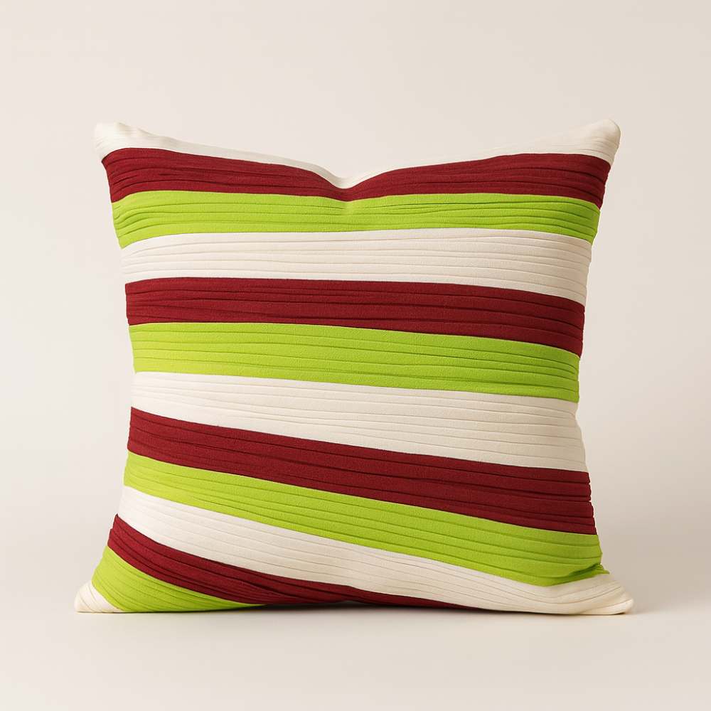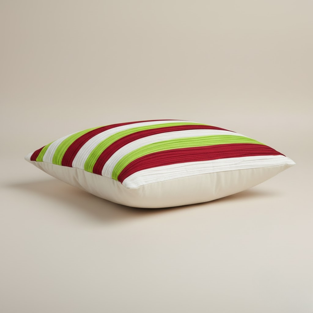 Brighten your home décor with this fabric-crafted cream cushion cover, styled with a vibrant multi-stripe textured pattern in refreshing green, rich maroon, and elegant cream. Made from premium poly cotton, it offers a soft, smooth texture with long-lasting durability — perfect for both everyday comfort and decorative styling.