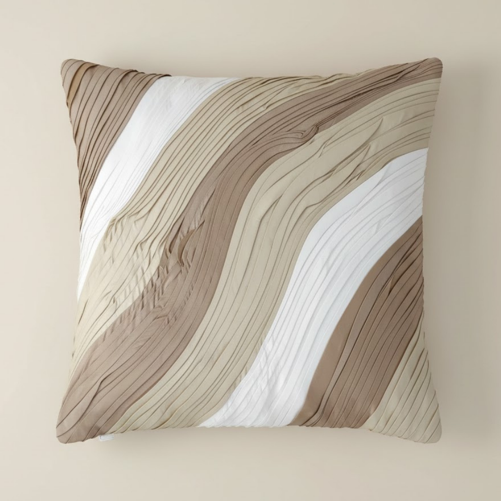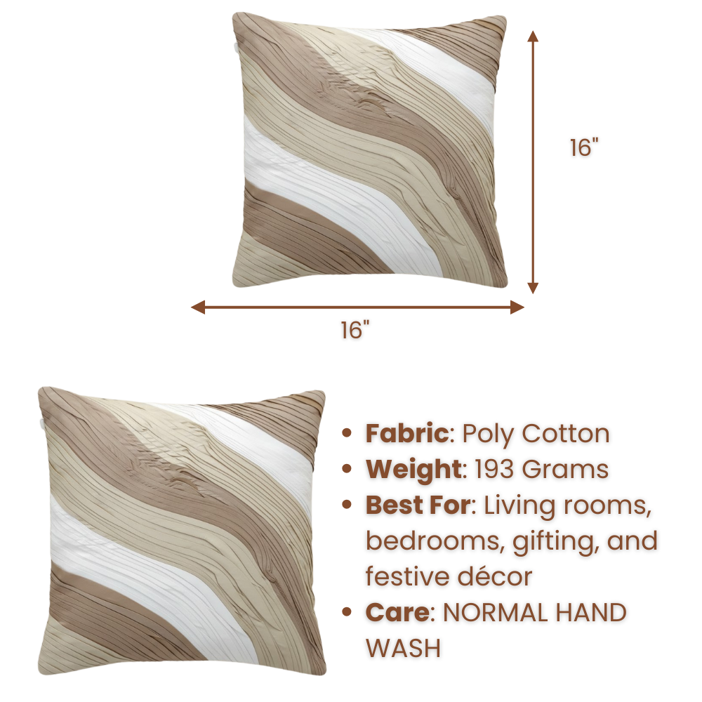 Soften your space with this fabric-crafted cream cushion cover, featuring gentle pleated waves in cream, beige, and taupe for an elegant, tone-on-tone look. The flowing diagonal pattern adds refined texture without overwhelming your décor, making this 16"x16" cushion a versatile accent for sofas, beds, and cozy corners.