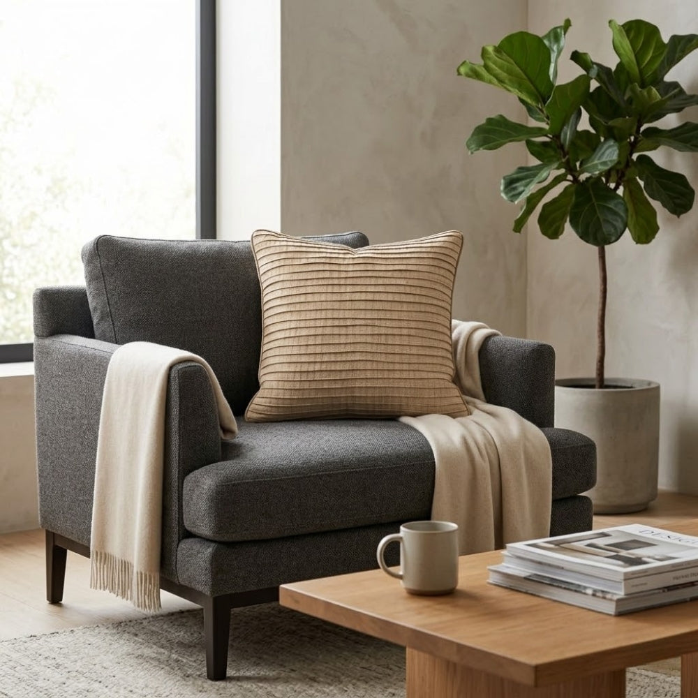 Crafted with high-quality poly cotton foam fabric, this cushion cover offers a plush, cushioned feel with excellent durability. The finely detailed ribbed texture design adds depth and structure, creating a clean, contemporary look that elevates your décor effortlessly.