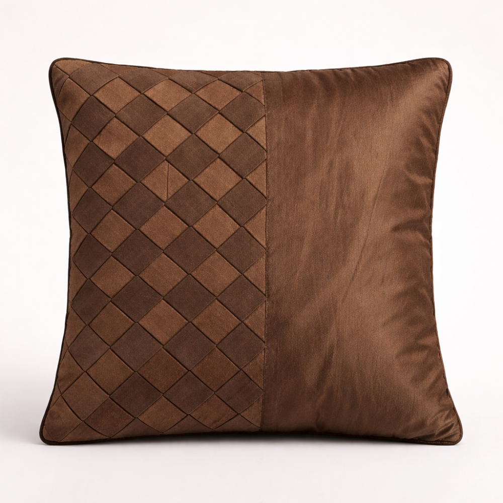 Enhance your home interiors with this elegant Fabric Crafted Brown Cushion Cover, designed to add warmth and sophistication to your décor. The refined dual-panel styling features a smooth fabric surface paired with a neatly quilted texture, creating a rich and modern visual appeal.