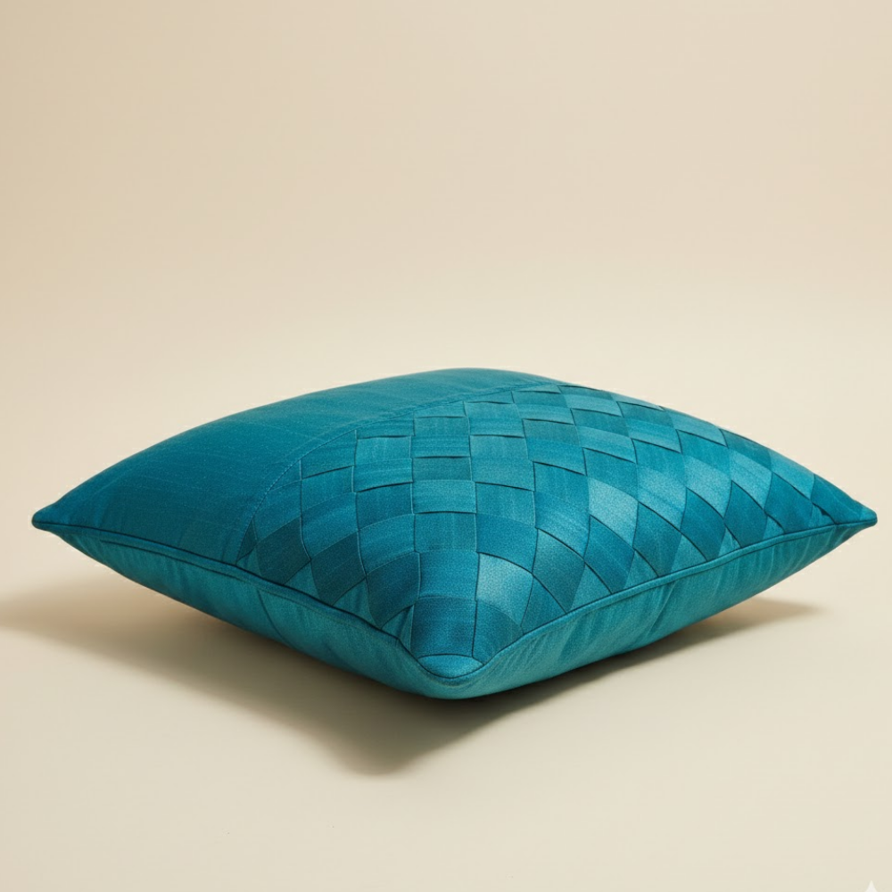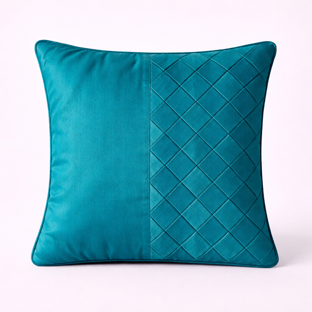 Add depth and sophistication to your décor with the Fabric Crafted Dark Turquoise Cushion Cover. Designed with a refined dual-panel layout, it features a smooth finish paired with elegant quilted detailing for a modern decorative look.