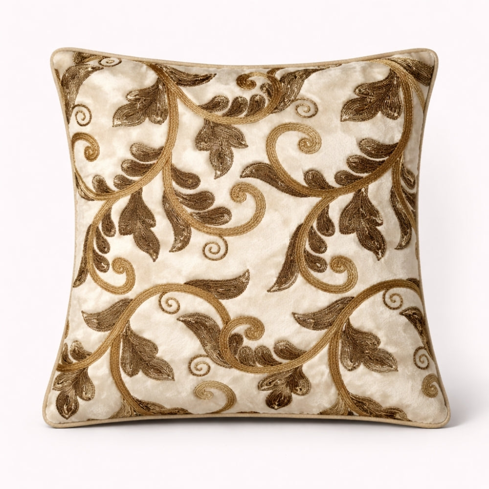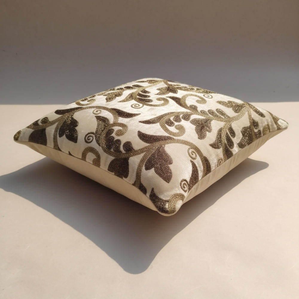 Crafted from high-quality poly chenille fabric, this cushion cover offers a soft, plush, and velvety texture, ensuring maximum comfort along with long-lasting durability. The intricate embroidered floral vine pattern beautifully highlights the surface with a detailed and luxurious finish, giving it a refined designer look.