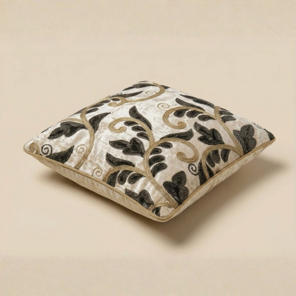 Crafted from premium poly chenille fabric, this cushion cover offers a soft, plush, and velvety texture, ensuring superior comfort along with long-lasting durability. The intricate embroidered floral vine pattern enhances the overall design with a graceful and luxurious finish, giving it a refined and designer-inspired look.