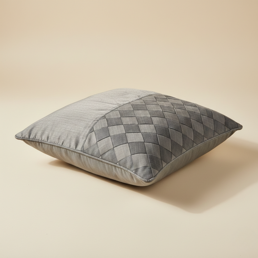 Bring subtle sophistication to your décor with this beautifully designed grey cushion cover. Featuring a stylish half diamond-quilted panel paired with a smooth solid finish, it adds texture and depth while maintaining a clean, modern aesthetic.