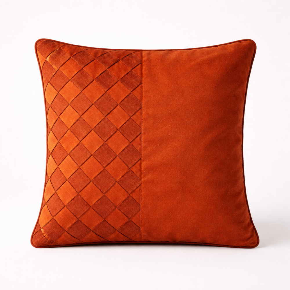 Bring natural warmth and subtle elegance to your home décor with this Fabric Crafted Light Brown Cushion Cover. Designed with a modern dual-panel layout, it combines a smooth fabric surface with refined quilted texture, creating a stylish and balanced look.