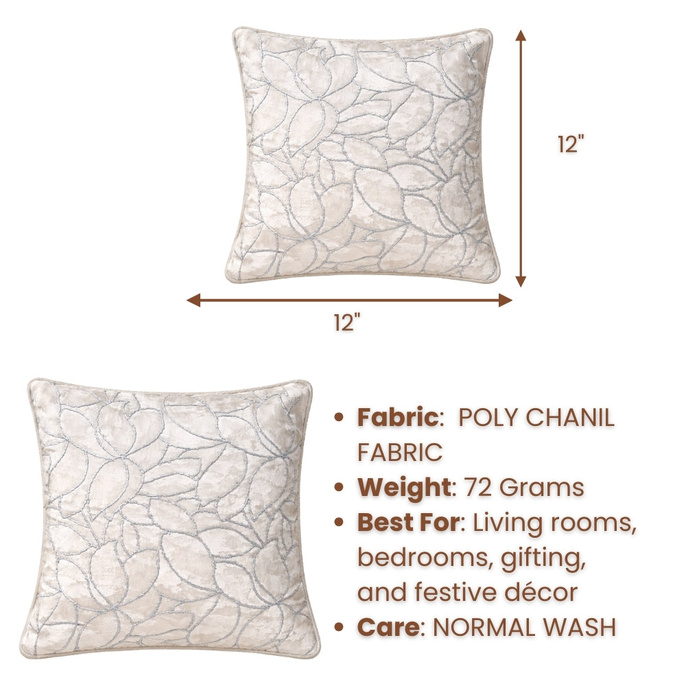 Crafted from premium poly chenille fabric, this cushion cover offers a luxuriously soft, velvety feel with excellent durability. The finely detailed embroidered leaf pattern adds a graceful texture, giving the cushion a modern yet timeless designer appeal.
