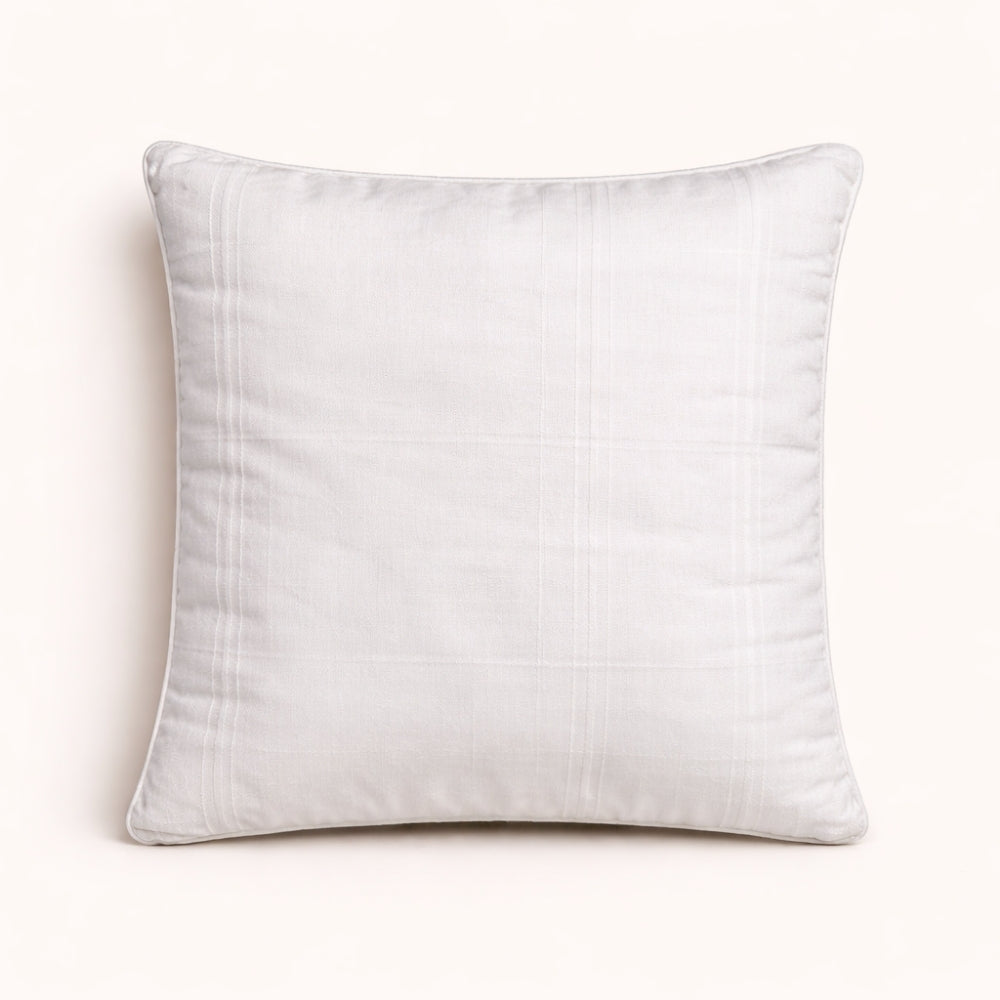 Elevate your home décor with this elegant Fabric Crafted Cushion Cover in White, designed to bring a touch of grace, sophistication, and subtle luxury to your living space. The soft white base creates a clean, calming, and premium aesthetic, making it perfect for modern as well as classic interiors.