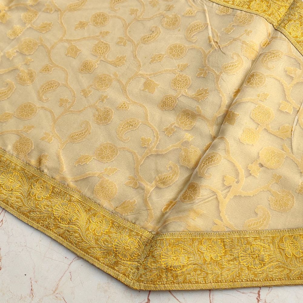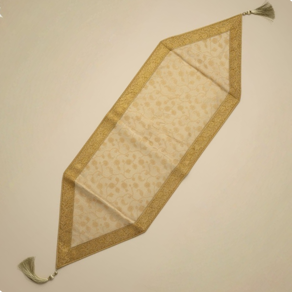 The radiant golden hue adds warmth and opulence, making it perfect for festive gatherings, celebrations, or everyday elegance. Crafted in a generous 17.5"x88" size and weighing 225 grams, it provides a graceful drape and premium quality feel, enhancing both modern and traditional interiors. Easy to maintain and long-lasting, this table runner is machine washable for your convenience.