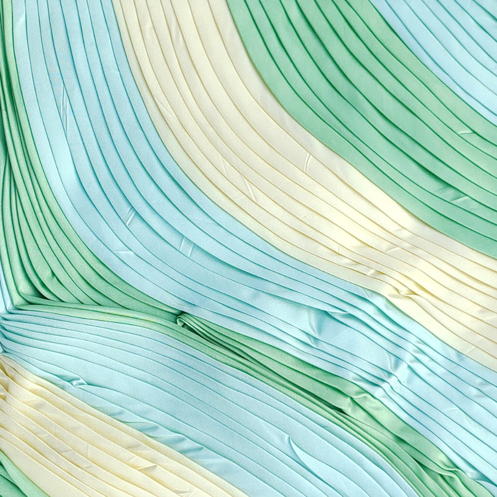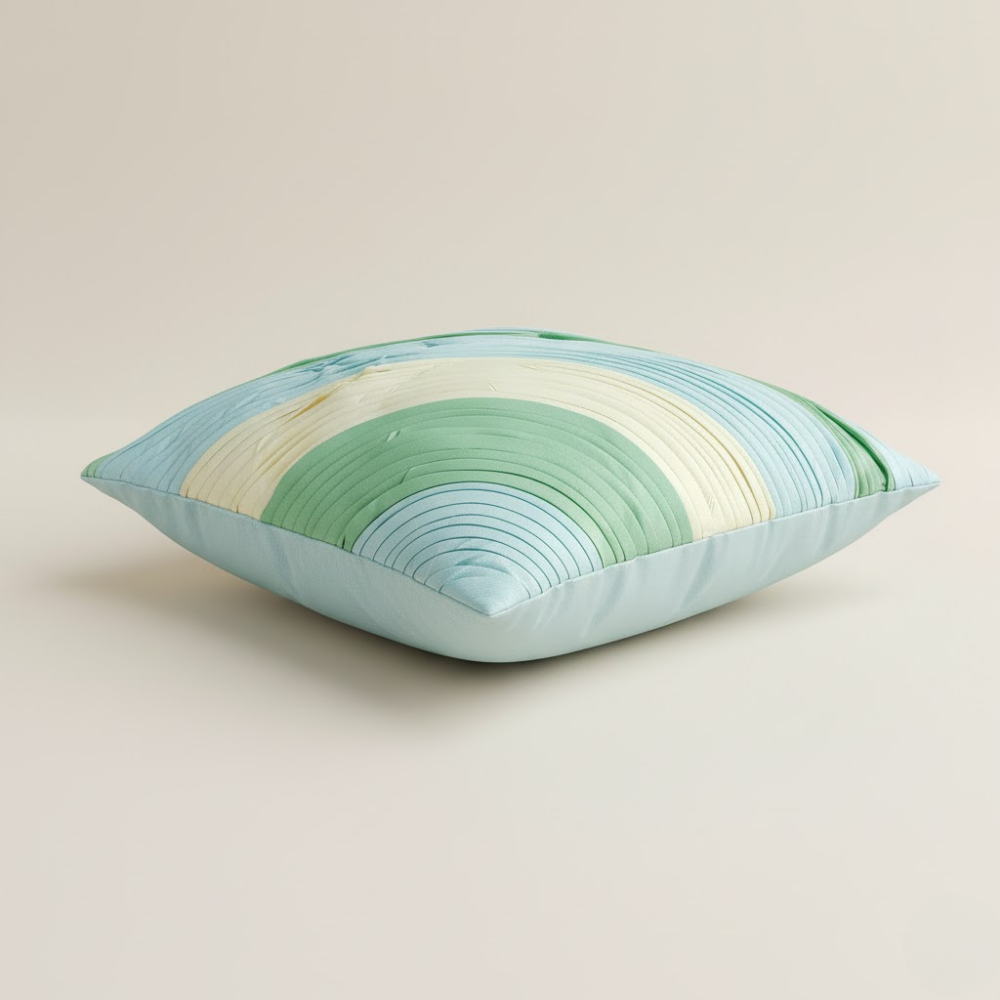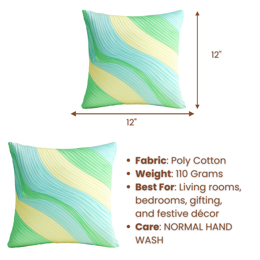 Refresh your décor with this fabric-crafted green cushion cover, designed with soothing pleated waves in mint green, aqua blue, and soft pastel yellow for a light, breezy look. The flowing diagonal pattern adds gentle movement and a contemporary touch, making this compact cushion a cheerful accent for sofas, beds, and cozy reading corners.