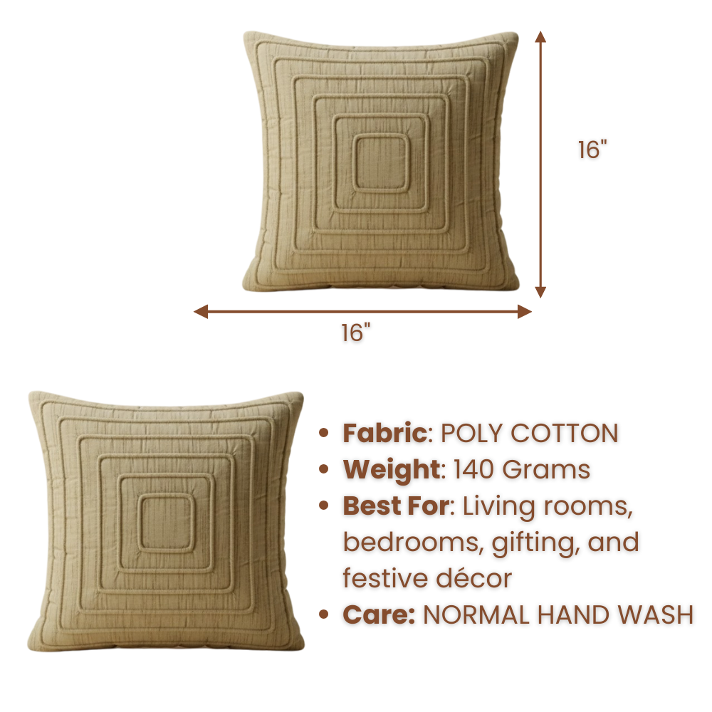 Made from premium poly cotton and weighing 140 grams, this cushion cover offers softness, durability, and long-lasting comfort. Its contemporary stitched detailing blends beautifully with both minimalist and traditional interiors, making it ideal for sofas, beds, accent chairs, and festive gifting.