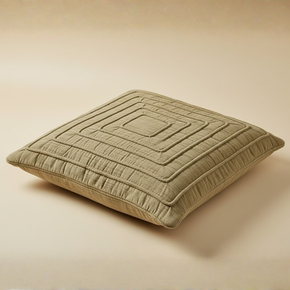 Elevate your home décor with this stylish fabric-crafted khaki cushion cover, designed with a modern layered geometric pattern that adds depth and character. The warm khaki tone brings an earthy, soothing charm—perfect for creating a cozy, natural, and elegant ambiance in any room.