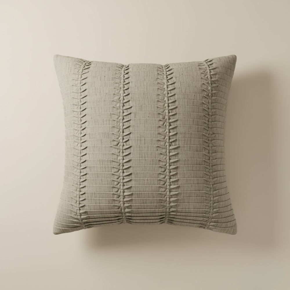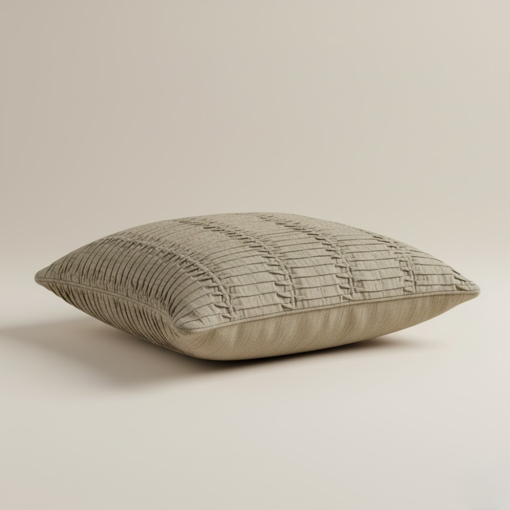 Bring a touch of natural warmth and sophistication to your interiors with this fabric-crafted khaki cushion cover, featuring a vertical pleated textured pattern that adds dimension and timeless appeal to your décor. Crafted from premium poly cotton, it offers superior softness, durability, and easy maintenance — blending everyday practicality with elegant design.