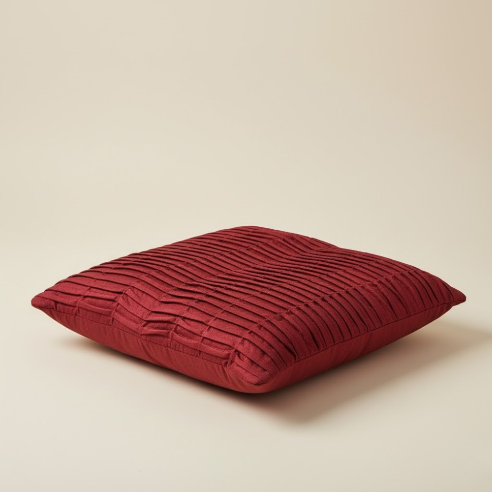 Infuse warmth and elegance into your décor with this fabric-crafted maroon cushion cover, featuring a pleated textured design that brings depth, sophistication, and modern flair to any space. Expertly made from premium poly cotton, it ensures long-lasting softness, durability, and easy maintenance — ideal for both daily use and festive settings.