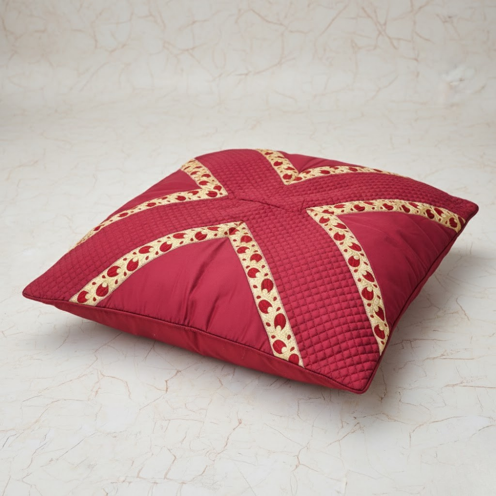 Add a touch of luxury and character to your home décor with this fabric-crafted maroon cushion cover, beautifully designed to combine modern geometry with a hint of traditional artistry. Made from premium poly cotton, it offers a soft, smooth, and durable texture — perfect for everyday elegance.
