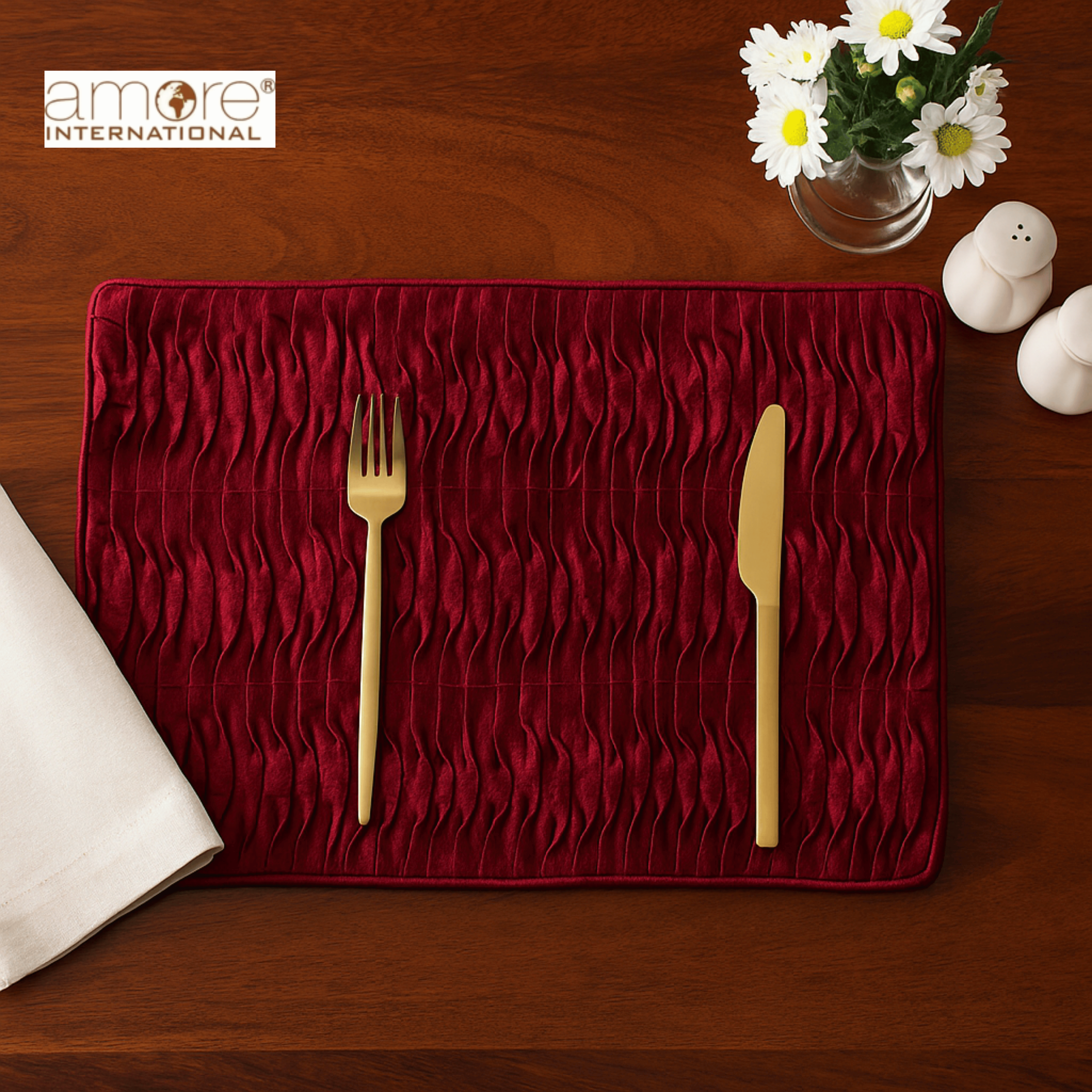 Bring warmth and elegance to your dining table with this maroon fabric-crafted placemat, designed to elevate everyday meals and special gatherings alike. Made from poly-cotton fabric, it combines durability with a soft, refined texture. The deep maroon shade with textured detailing adds a rich, luxurious touch to your table setting. Weighing 80 grams, it is lightweight yet reliable for daily use. Its machine washable design ensures easy cleaning, making it a practical and stylish addition to your dining essentials.