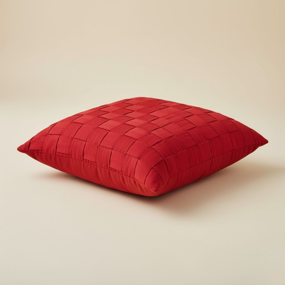 Elevate your home décor with this fabric-crafted red cushion cover, featuring a beautiful interlock design that adds depth and texture to any space. Made from premium poly cotton, it offers a smooth, durable, and soft finish — perfect for everyday comfort and style.