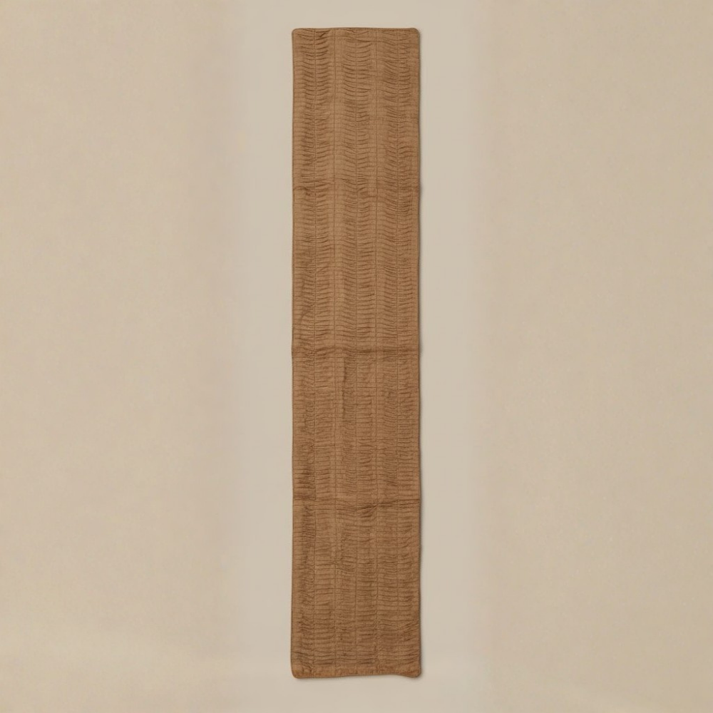 The subtle sand shade introduces warmth and sophistication, perfectly complementing neutral, modern, and minimal interiors. Sized at 13"x70" and weighing 240 grams, it drapes beautifully and adds a refined handcrafted touch to your dining experience. For easy upkeep, this table runner is machine washable, ensuring convenience without compromising on elegance.
