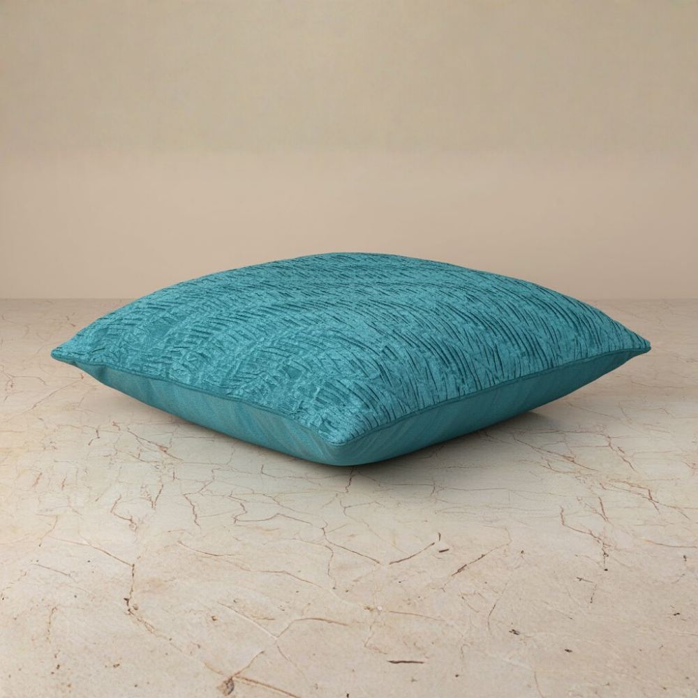 Refresh your home décor with this elegant fabric-crafted turquoise cushion cover, designed with a modern textured wave pattern that adds movement, depth, and a soothing visual appeal. The calming turquoise shade instantly brightens any space, making it a perfect choice for contemporary, coastal, or festive interiors.