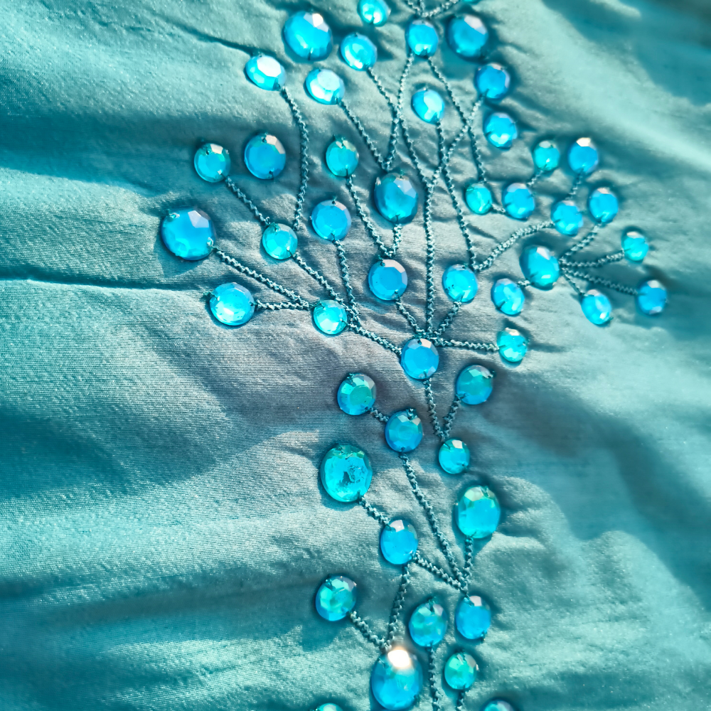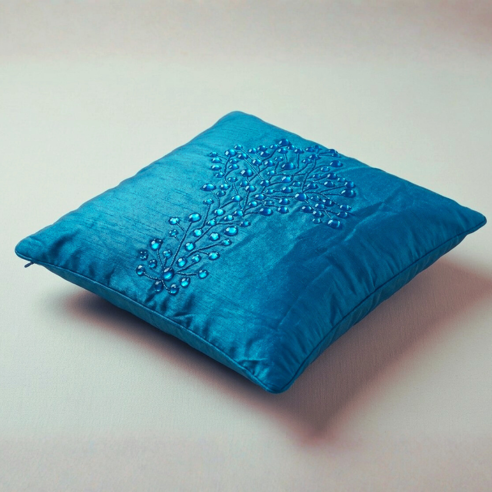 Bring a refreshing and elegant touch to your home décor with this beautifully Hand Crafted Blue Cushion Cover. Designed with a delicate floral branch embroidery highlighted with bead embellishments, this cushion cover creates a graceful decorative accent that instantly enhances the charm of any interior space.