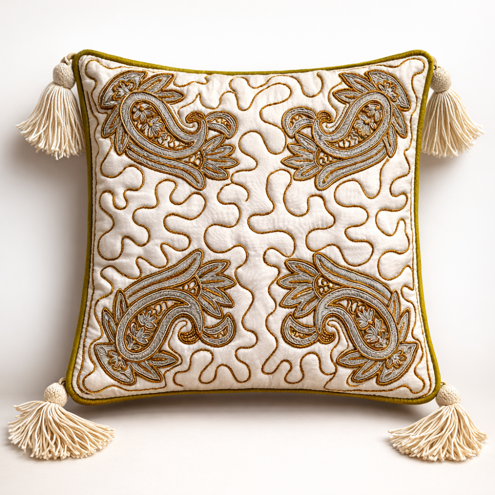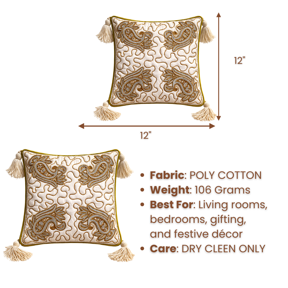 Add a touch of soft elegance to your home décor with this beautifully Hand Crafted Cream Cushion Cover. Designed with intricate paisley embroidery and decorative stitched patterns across the surface, this cushion cover reflects fine craftsmanship that enhances the beauty of any interior space.