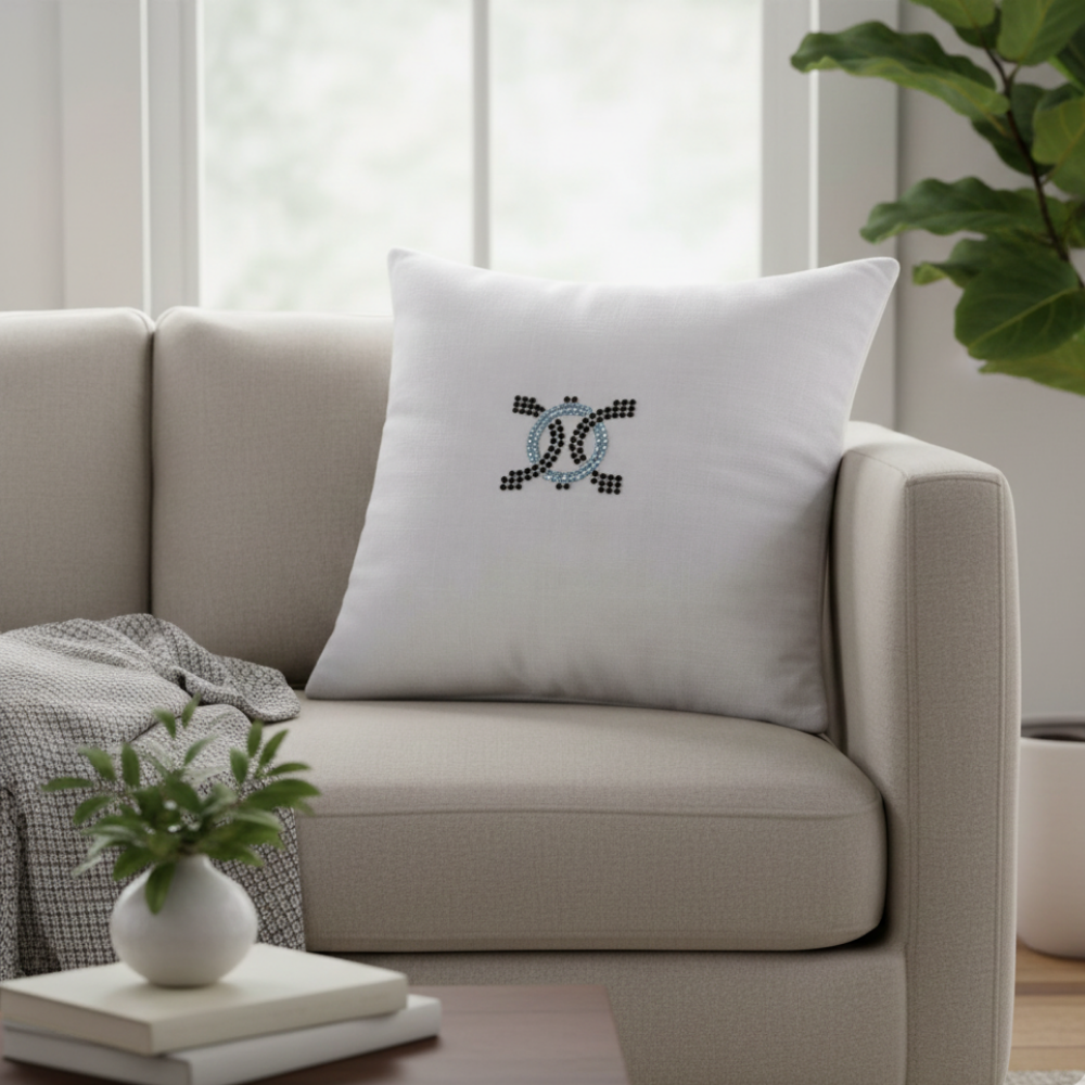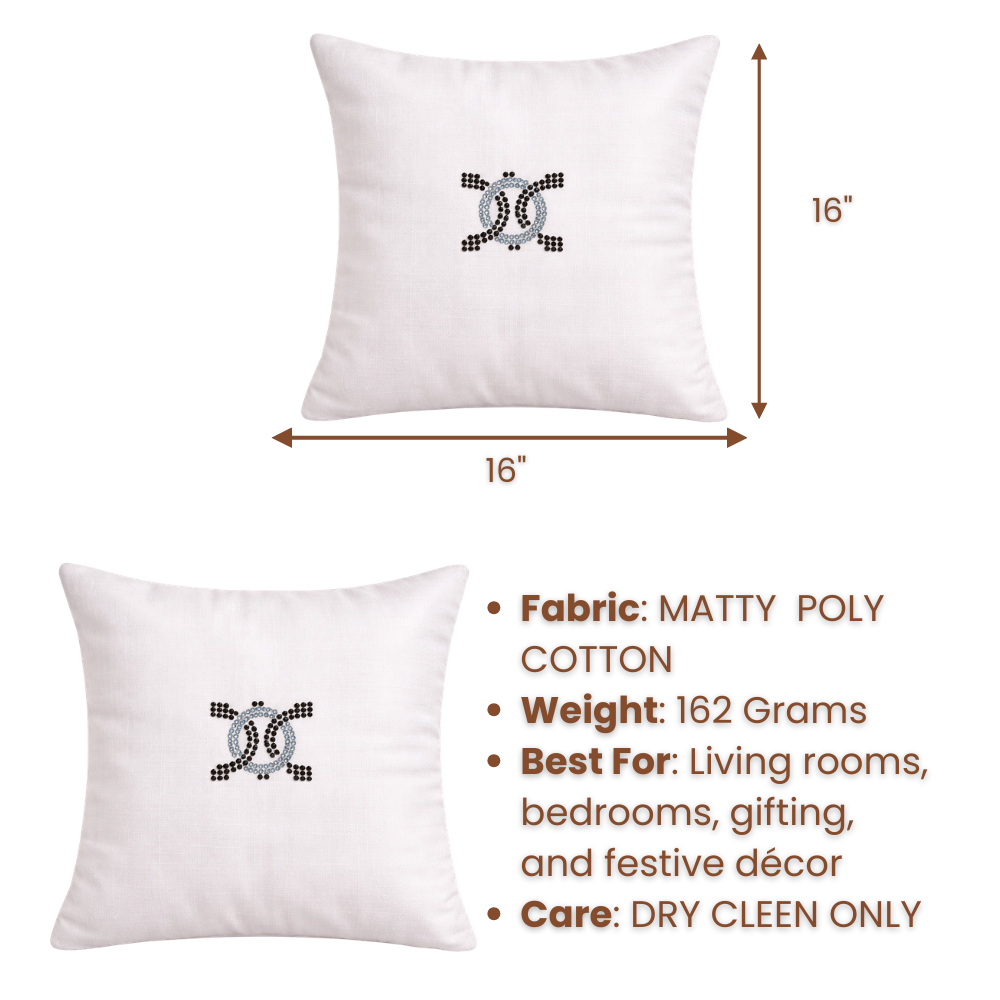 Bring a clean and elegant touch to your home décor with this Hand Crafted White Cushion Cover. Featuring a minimal embellished center design, it creates a refined and stylish accent that blends effortlessly with modern and contemporary interiors.