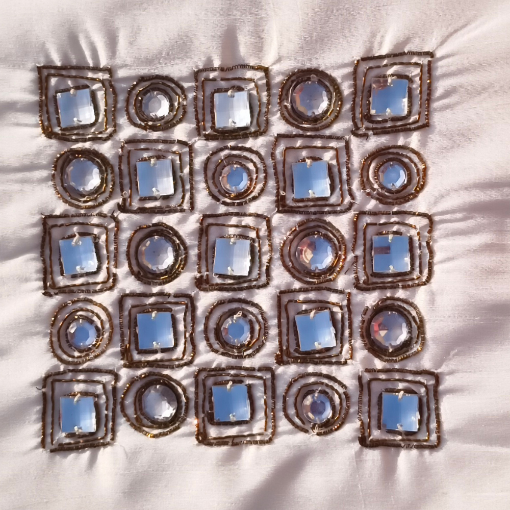 Bring elegance and sophistication to your home décor with this Hand Crafted White Cushion Cover. Designed with a beautifully framed border and a detailed geometric embroidered center panel, it creates a refined and decorative accent that enhances any interior space.