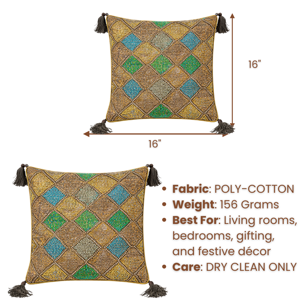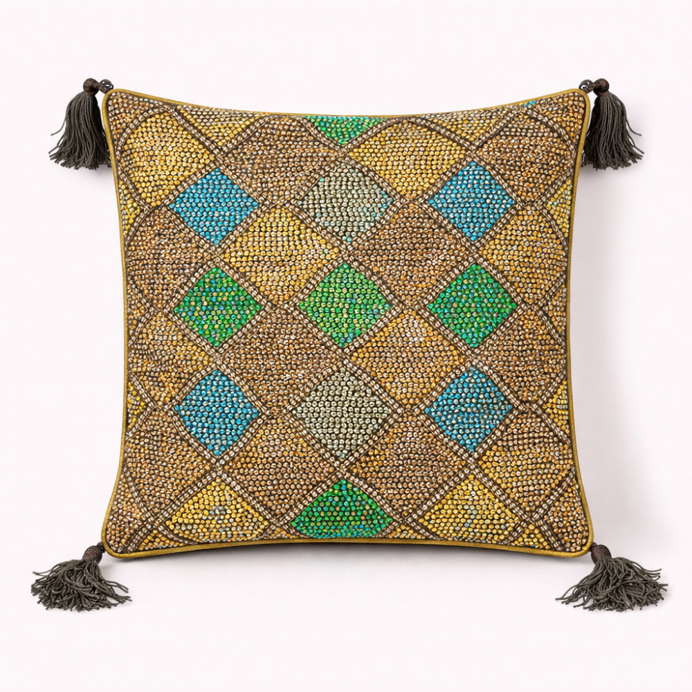 Each diamond panel is intricately handcrafted, giving the cushion a rich texture and depth that instantly elevates sofas, beds, or accent seating. The elegant tassels on all four corners add a traditional, festive touch while enhancing its premium appeal.