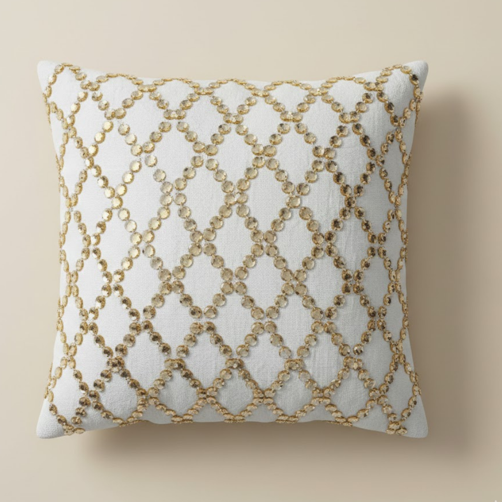 Crafting: Handcrafted cushion cover with gold sequin lattice embellishment