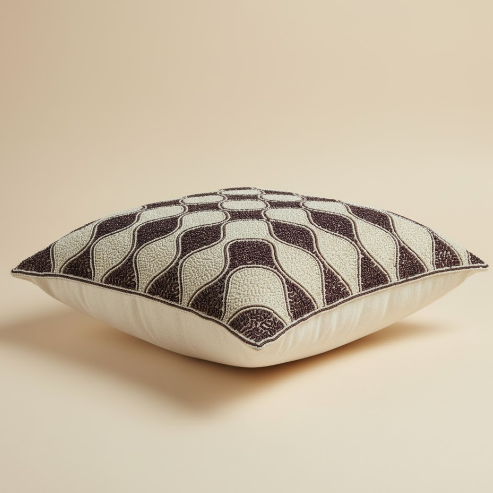 Crafted in a generous 16"x16" size and weighing 430 grams, it offers a rich, substantial, and premium feel, ensuring durability and long-lasting comfort. The smooth texture and detailed handcrafted finish showcase fine craftsmanship and refined beauty. Perfect for modern, classic, and minimalist interiors, this cream cushion cover blends effortlessly with any décor style, adding warmth, elegance, and understated luxury. To maintain its pristine color and finish, dry clean only is recommended.