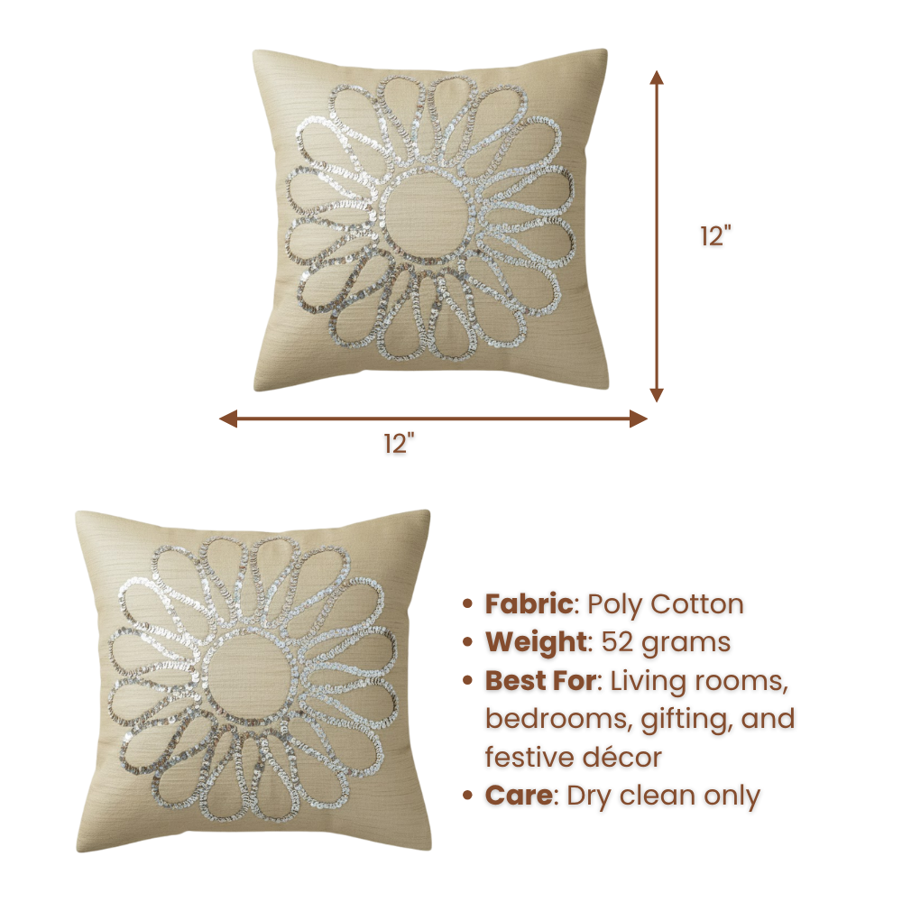 The warm beige shade blends effortlessly with any décor style — from minimal and classic to modern and cozy interiors. Lightweight at 52 grams and sized at 12"x12", it offers a premium yet airy feel, ideal for sofas, beds, or reading corners. To preserve its delicate handcrafted beauty and natural tone, dry clean only is recommended.