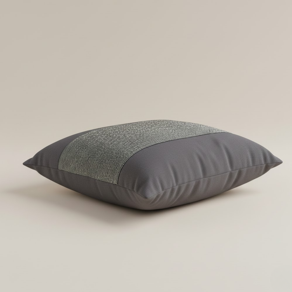 Bring refined, modern elegance to your home with this handcrafted dark grey cushion cover, perfect for creating a calm yet stylish focal point on sofas, beds, and accent chairs. The deep grey base is complemented by a broad central textured stripe in a coordinated tone, adding subtle pattern and dimension while keeping the look sleek and contemporary.