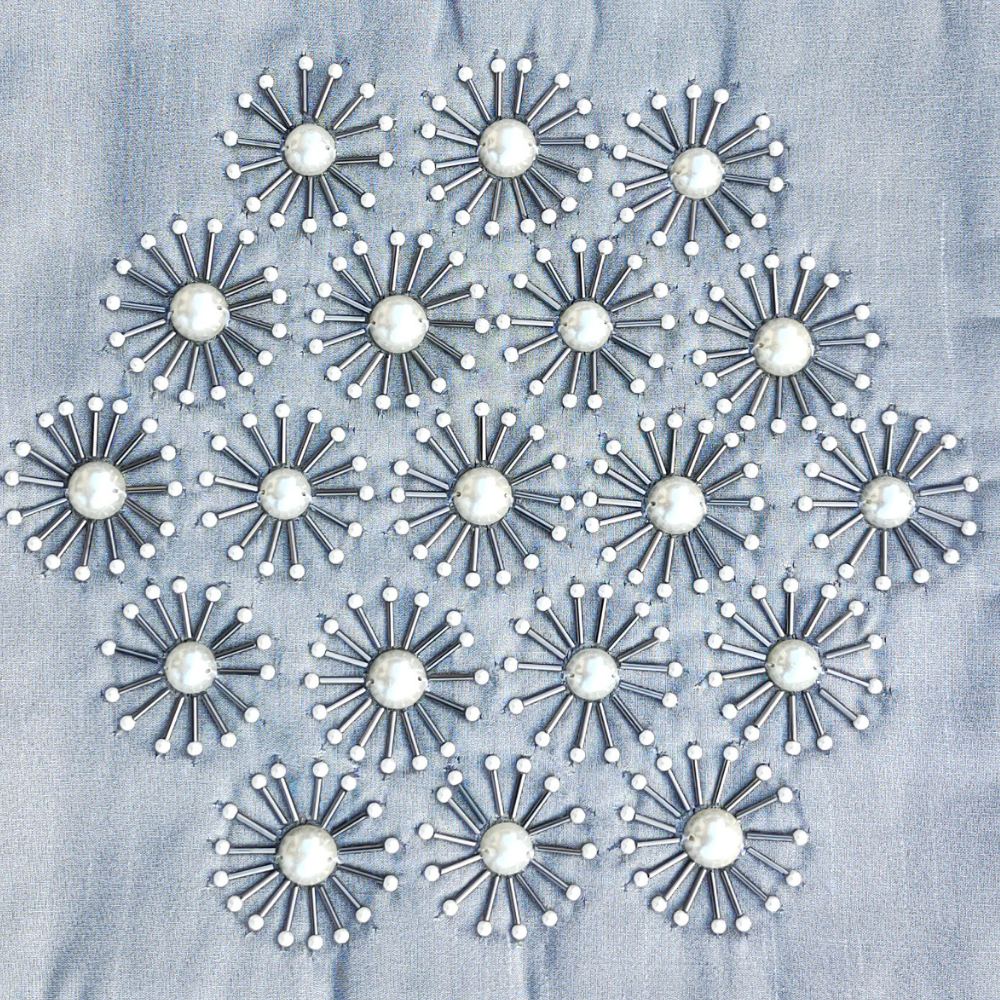 Design: Clustered raised floral pattern with bead-style centers