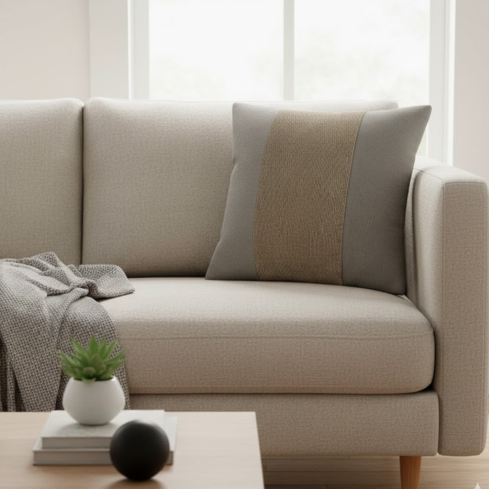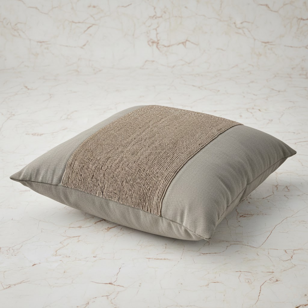 Warm up your living space with this handcrafted khaki cushion cover, perfect for adding an earthy, sophisticated touch to sofas, beds, and accent chairs. The soothing khaki base is enhanced by a wide central textured stripe in a coordinated tone, creating a stylish, contemporary look that pairs beautifully with neutrals, pastels, and richer hues alike.