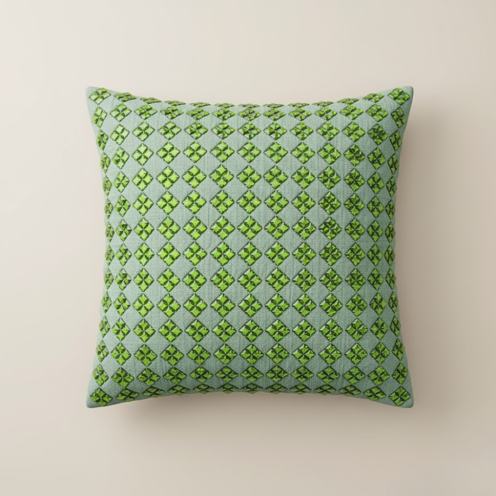 Crafted in a generous 16"x16" size and weighing 220 grams, it offers a premium yet comfortable feel, ensuring an elevated look without compromising on softness. The fine handcrafted detailing and smooth finish reflect exceptional craftsmanship and long-lasting quality. Perfect for nature-inspired spaces, modern interiors, and serene décor themes, this cushion cover enhances your home with fresh elegance and timeless simplicity. For long-lasting beauty and color vibrancy, dry clean only is recommended.