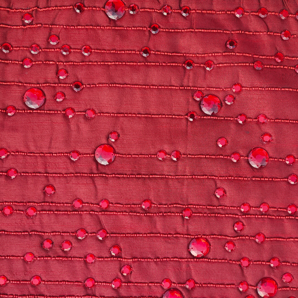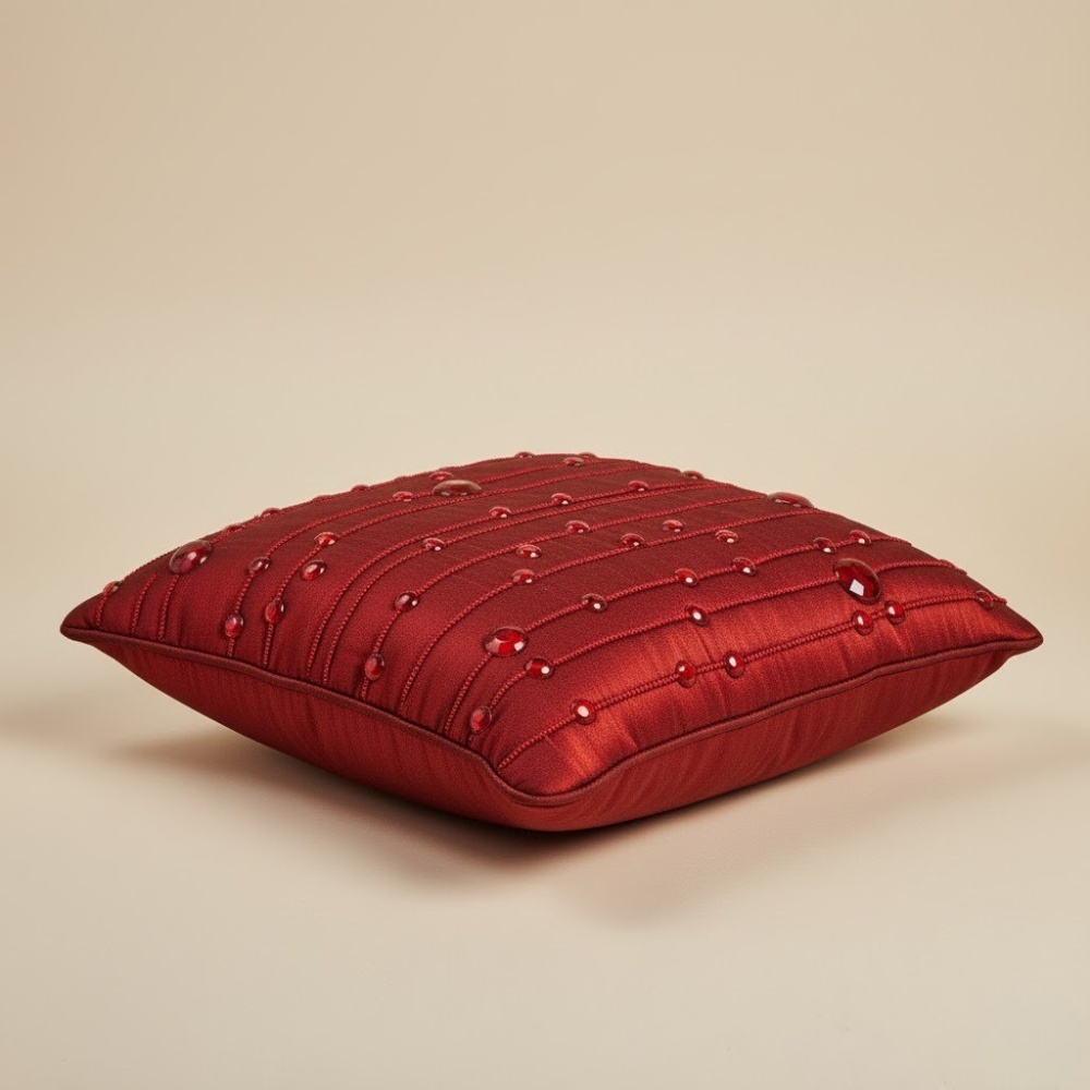Elevate your home décor with this handcrafted maroon cushion cover, designed to bring richness and festive elegance to any space. Adorned with intricate bead embellishments and refined vertical thread detailing, this cushion cover adds a luxurious shimmer and artistic charm to your interiors. The deep maroon shade enhances both traditional and modern décor themes beautifully.