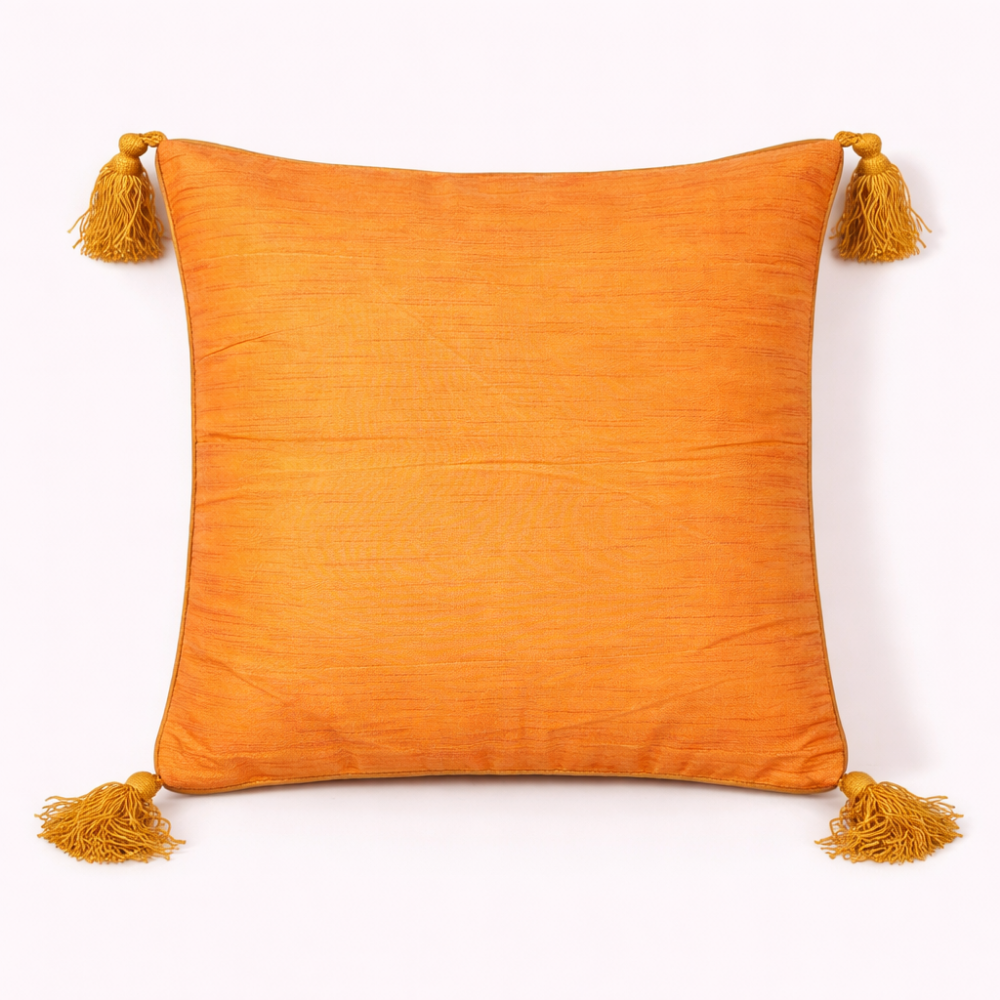 The finely handcrafted embroidery adds texture and artisanal charm, while matching tassels on all four corners lend a festive and luxurious finish. Its compact 12"x12" size makes it ideal for layering on sofas, accent chairs, beds, or decorative corners, instantly uplifting your space with color and character.