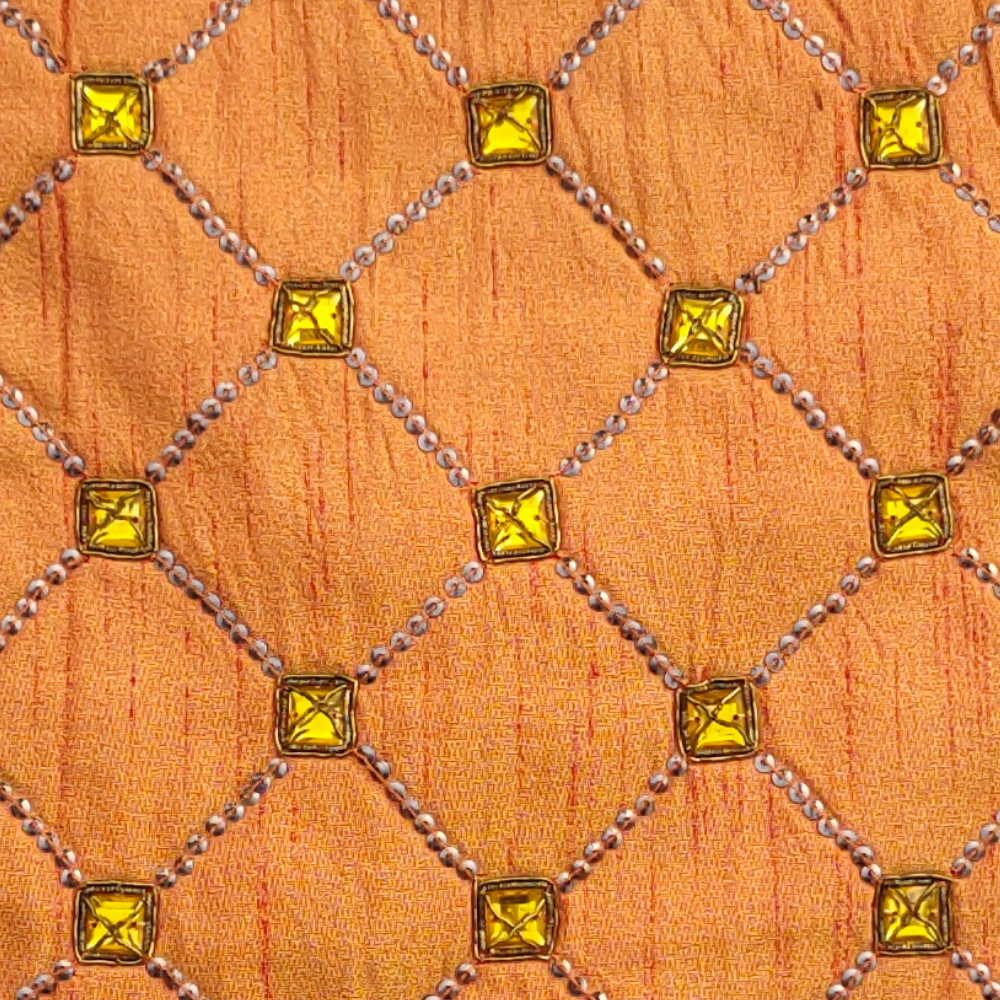 Color: Orange with Subtle Golden Diamond Quilted Embroidery