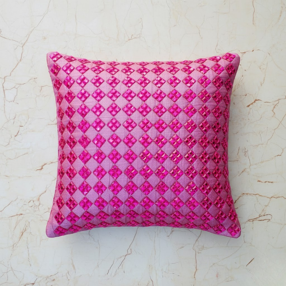 Crafted in a spacious 16"x16" size and weighing 220 grams, it offers a premium yet comfortable feel — perfect for everyday use and stylish home décor. With its soft texture and beautifully handcrafted detailing, this cushion cover showcases exceptional craftsmanship and long-lasting quality. Whether you’re styling a feminine theme, modern décor, or playful interiors, this pink cushion cover adds style, warmth, and subtle luxury. For best care and color preservation, dry clean only is recommended.