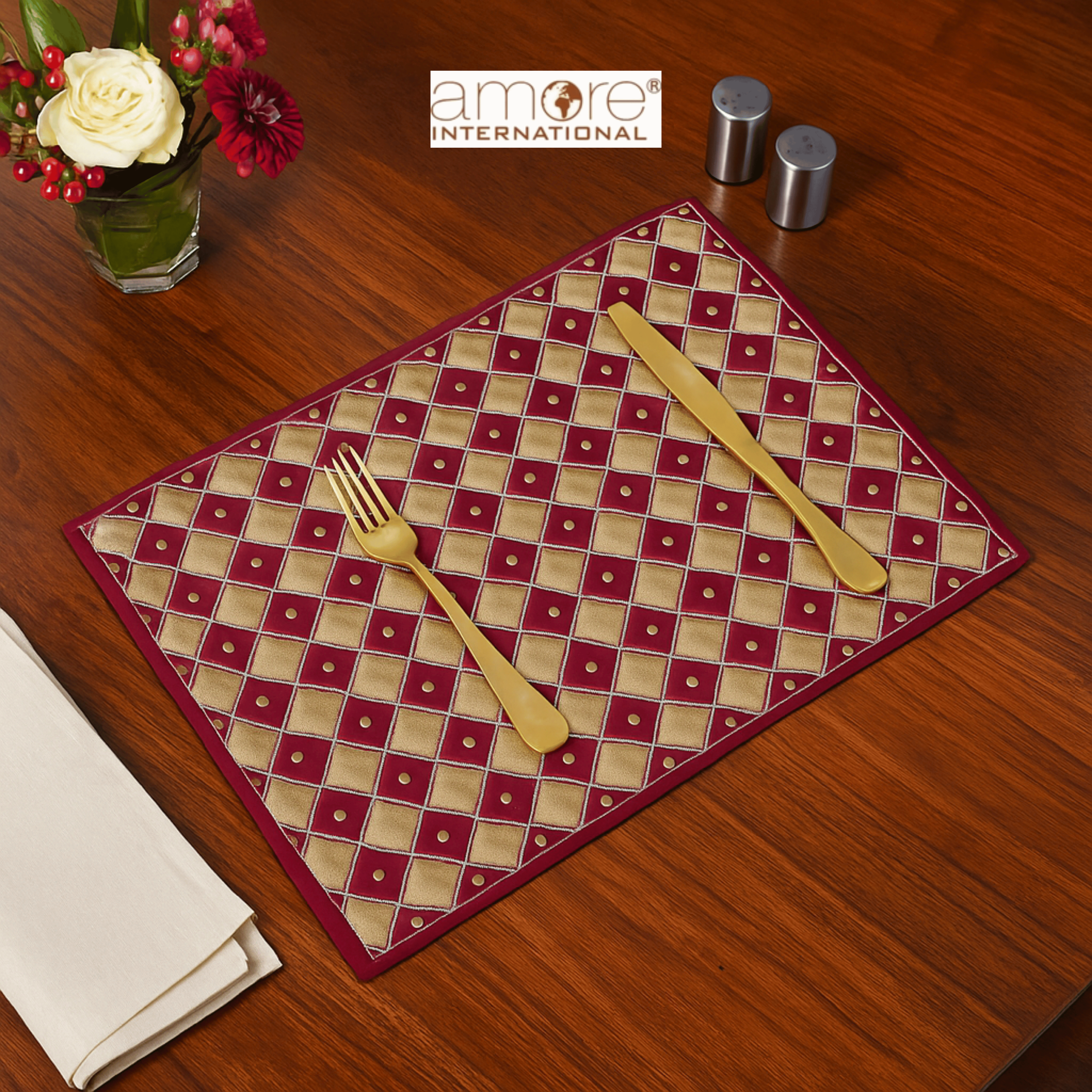 Enhance your dining table with this handcrafted maroon placemat, created to bring together style and practicality. Made from poly-cotton fabric, it delivers a soft yet durable finish, suitable for both daily meals and festive occasions. With a lightweight build of 60 grams, it is easy to handle while adding a rich, vibrant touch to your décor. The deep maroon color adds warmth and sophistication, pairing beautifully with a wide range of dinnerware. For long-lasting use, this placemat is best maintained with dry cleaning.