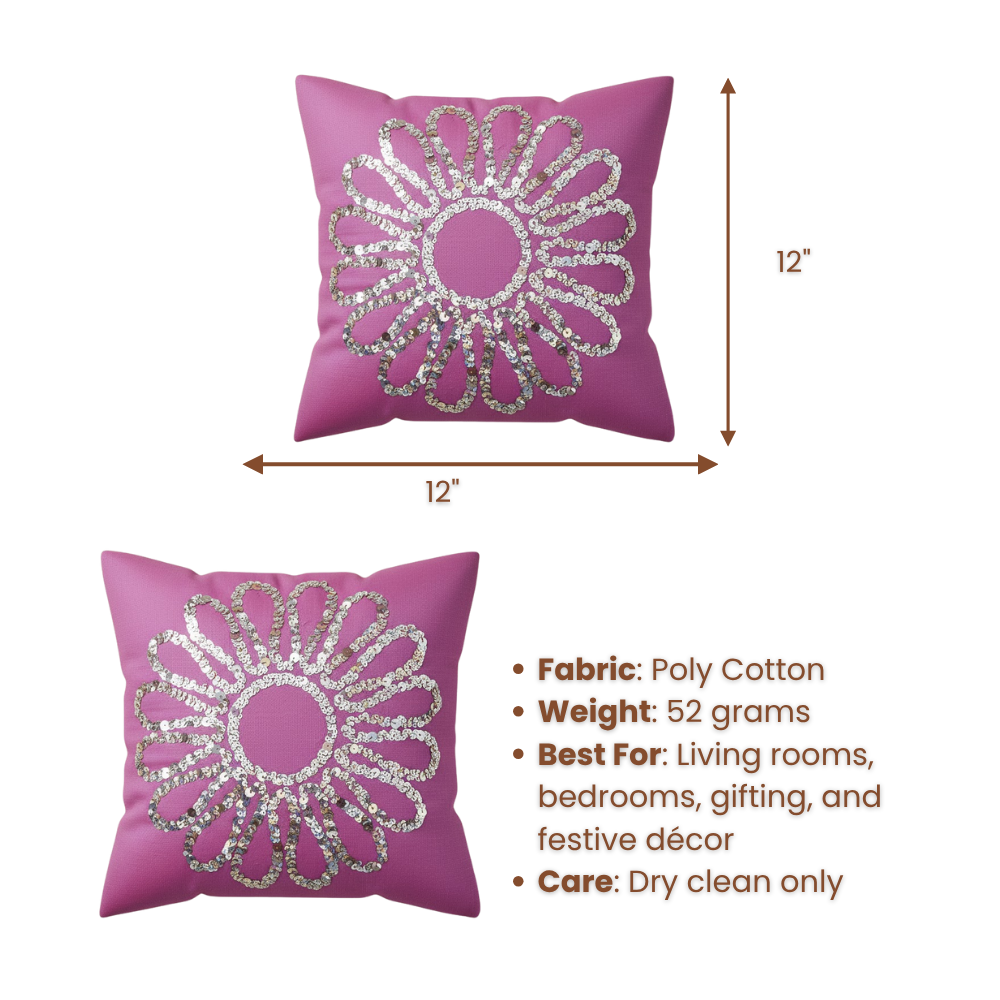 Add a touch of regal elegance to your home décor with this handcrafted purple floral cushion cover, designed to bring richness, charm, and sophistication to any space. Made from premium poly cotton, it features a smooth and durable finish paired with delicate floral detailing, giving it a refined handcrafted appeal.