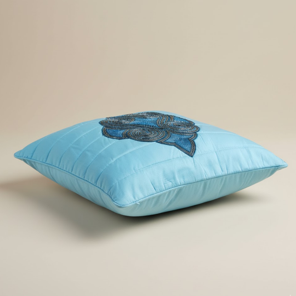 Designed in a standard 16"x16" size and weighing 165 grams, it offers a light yet premium feel with smooth texture and neat craftsmanship. The handcrafted detailing adds a unique artisanal charm, ensuring long-lasting quality and an elegant visual statement. Ideal for modern, coastal, boho, and vibrant interior styles, this cushion cover brings brightness, freshness, and timeless appeal to your décor. To preserve its beauty and color richness, dry clean only is recommended.