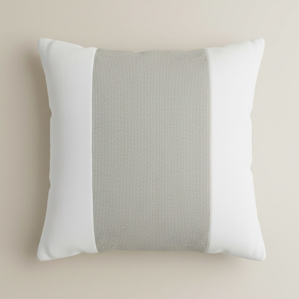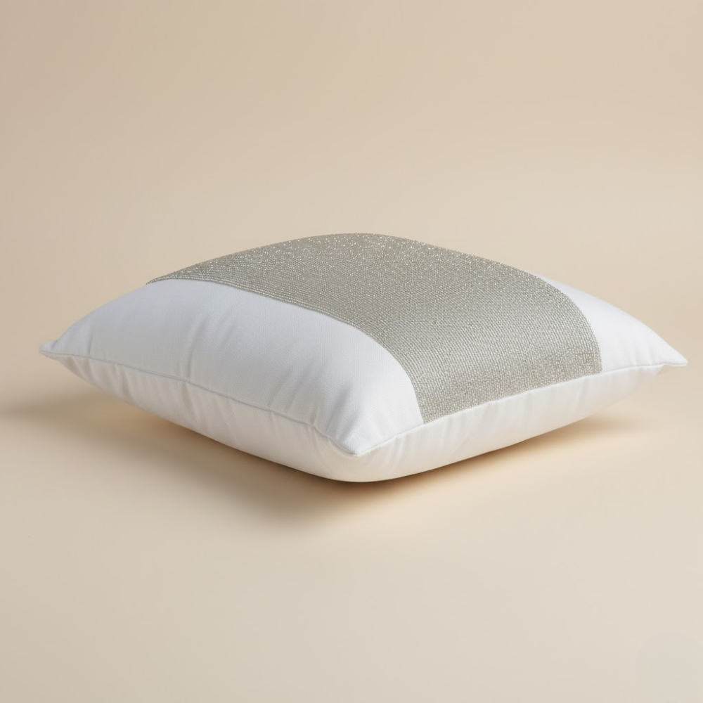 Brighten your interiors with this handcrafted white cushion cover, designed to bring a fresh, airy elegance to any décor setting. The crisp white base is beautifully balanced with a wide central textured stripe in a soft neutral tone, creating a clean, modern look that coordinates effortlessly with both colorful and minimalist spaces.
