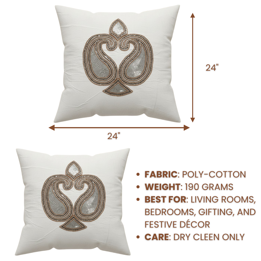 Designed in a 24"x24" size and weighing 190 grams, it offers a spacious, lightweight, and comfortable feel — ideal for sofas, lounge chairs, or bedroom accents. Its smooth texture and meticulous handcrafted detailing ensure lasting quality and refined charm.